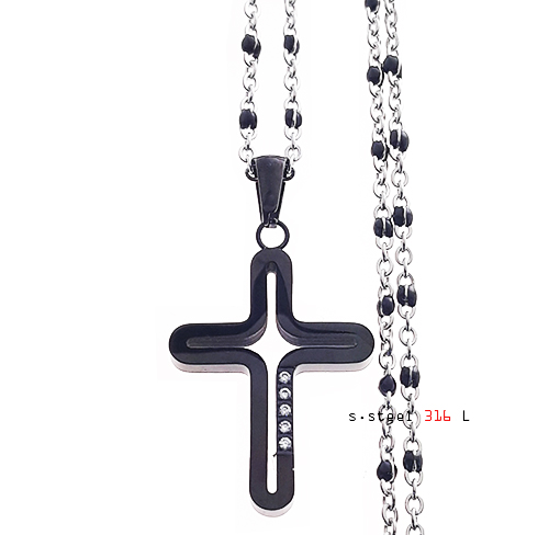 Με όμορφο φινίρισμα και στυλ που ξεχωρίζει .! μαυρος Σταυρός με λευκες πετρες , και αλυσίδα με μπιλιες σμάλτο μαυρο . Η καδένα εχει μηκος 60 εκ και ο Σταυρός μας διαστάσεις 3,1 χ 2,1 χωρίς τ κρικο .