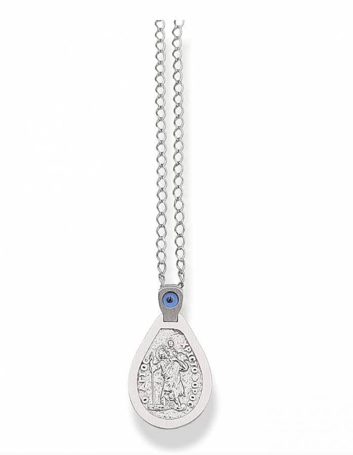 Aσημένιο φυλαχτό απο ασήμι 925 , χειροποίητο αλλά και επιροδιωμένο με ιδιαιτερη λάμψη και αντοχή στο χρόνο ,.! με σατινέ μάτ και λουστράτες γυαλιστερές επιφάνειες , με μάτι  στο κρίκο , συνοδέυεται με αλυσιδάκι και κούμπωμα . το εικονάκι μας διπλής όψεως με τις παραστάσεις του Αγ Χριστόφορου και της Παναγίας , έχει διαστάσεις μαζί με τον κρίκο ,  2,8 χ 1,6 εκ και πάχος 1,5 mm.
