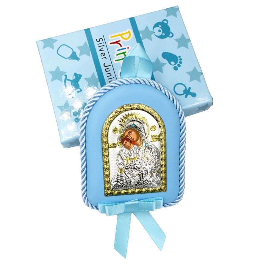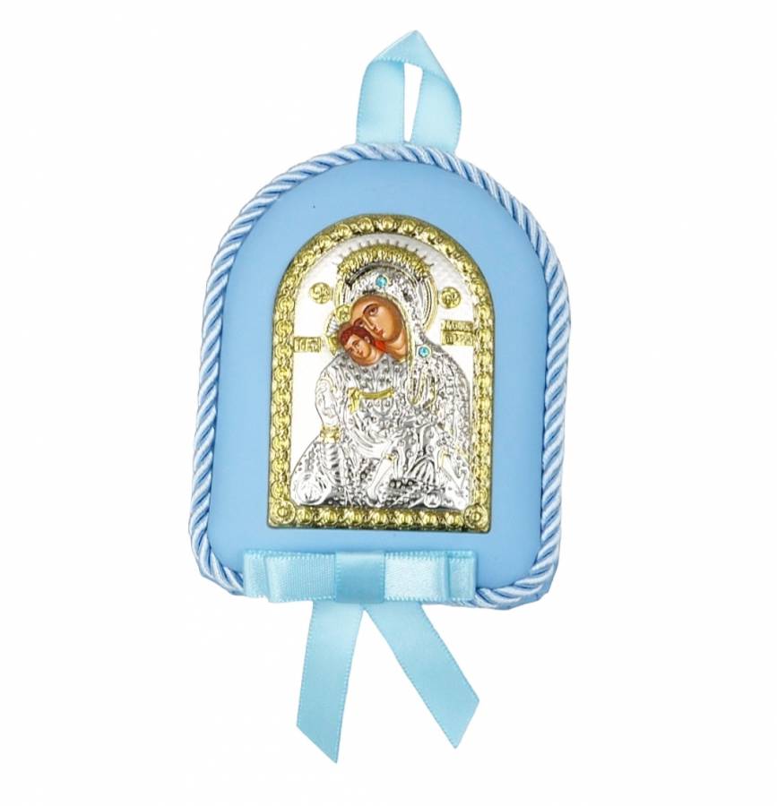 •  Φυλαχτό εικονάκι 7.5 χ 9.5 cm princelìno ,απο την prince silvero με δερματίνη φιλμ ασήμι κ πέτρες .