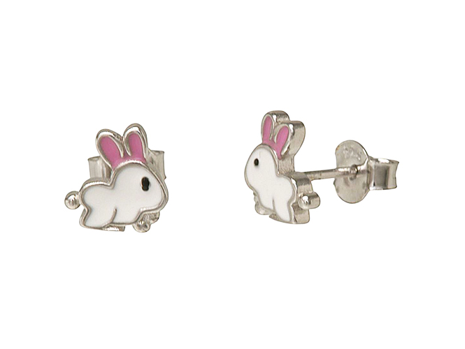 Παιδικά σκουλαρίκια ασημένια 925 καρφωτά με σμάλτο , λαγουδάκι