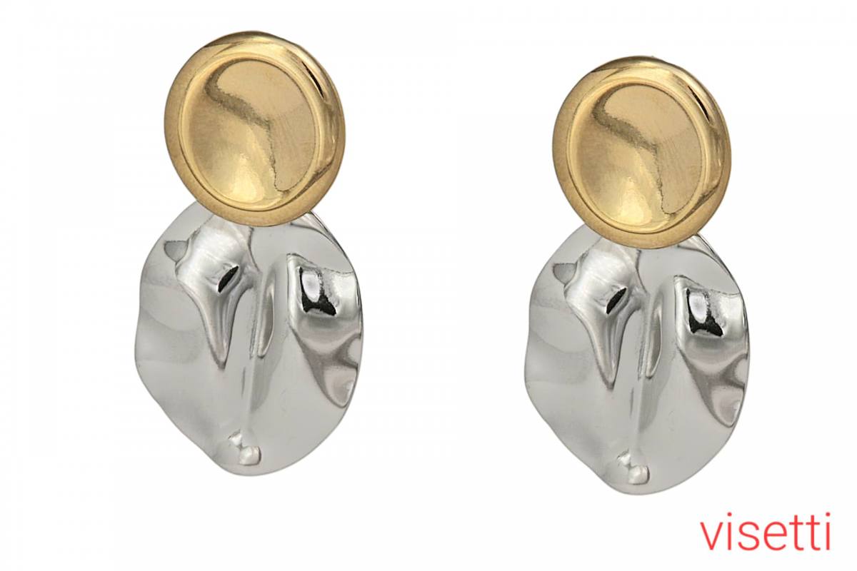 •  γυναικεία σκουλαρίκια ανοξείδωτο ατσάλι απο τη visetti . kαρφωτά δίχρωμα με λουστράτες και τσαλακωτές επιφάνειες . ύψος