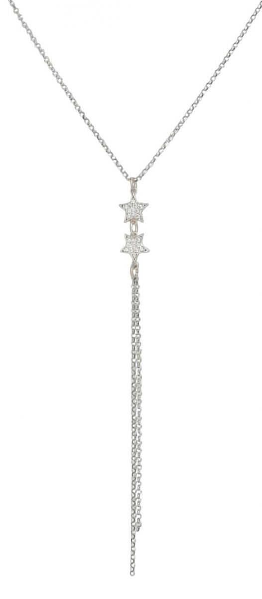 Γραβάτα Μίνιμαλ κολιέ ασημένιο 925 με Αστεράκια και πέτρες Ζιργκόν
