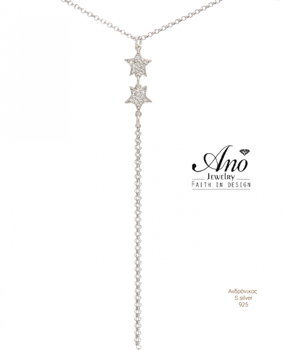 •  Kμψό με χαραχτήρα , διακριτικό κολιέ με Αστεράκια κρεμαστά στυλ γραβάτας .Ιδιαίτερο από Ασήμι 925 , επιπλατινωμένο με Ζιργκόν πέτρες .