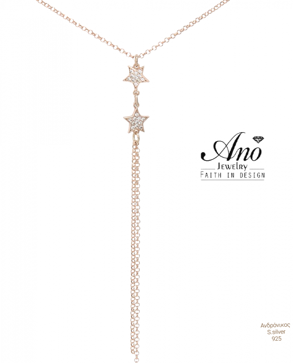 Μίνιμαλ διακριτικό κολιέ με Αστεράκια γραβάτα . Από Ασήμι 925 , επιχρυσωμένο 14 κ Ροζ Χρυσό , κ με πέτρες ζιργκόν . αλυσίδα 45 εκατοστά , ενα λεπτεπίλετο κόσμημα για ...λεπτεπίλετα γούστα ....