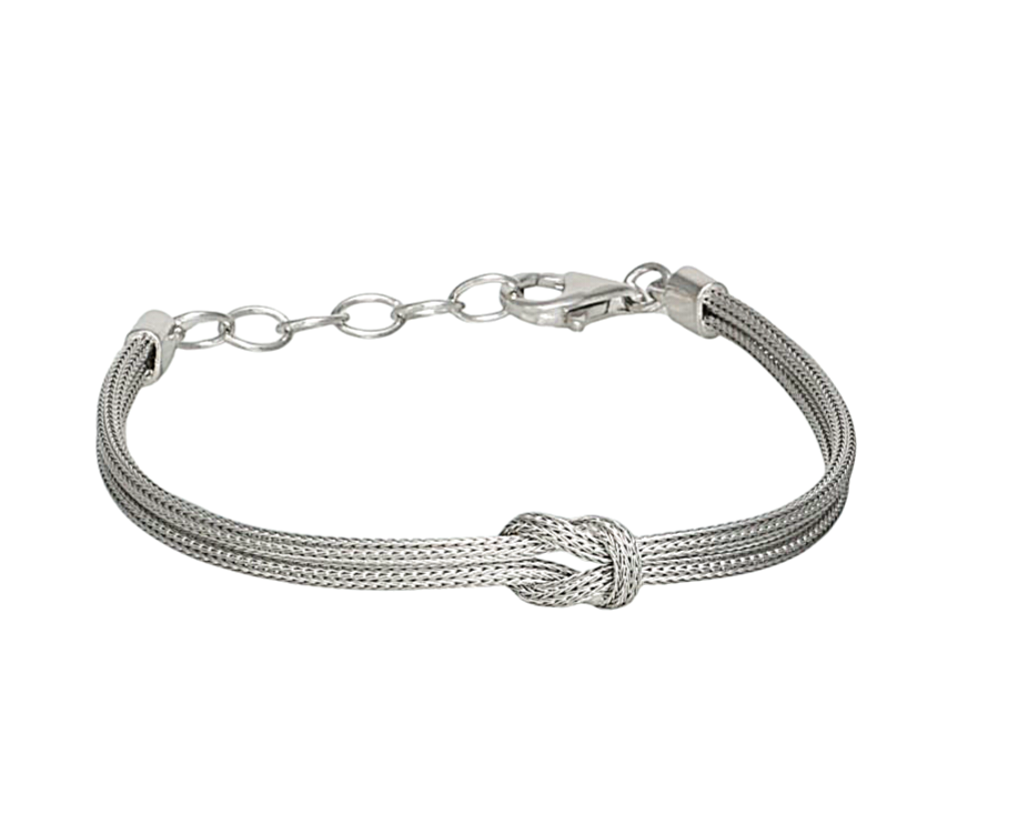 κομψό ,διαχρονικό , και ...αό ασήμι 925 , επιπλατινωμένο . Με τον Κόμπο του ηρακλή με τη γνωστή κάλτσα , ιταλικής κατασκευής . ένα πανέμορφο βραχιόλι για το τέλειο δώρο .! το βραχιόλι διαθέτει εχτε .