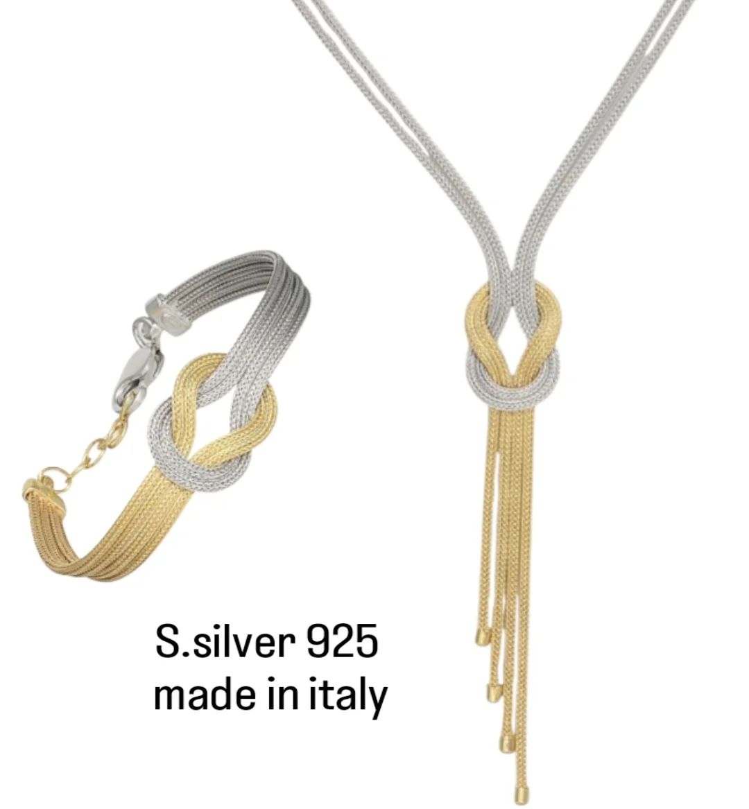 Eντυπωσιακό με Στυλ Κ χαραχτήρα , ιταλική φινέτσα και κατασκευή , για μοναδικές περιστάσεις , μοναδικό δώρο διαχρονικό και πάντα επίκαιρο . Από ασήμι 925 , επιπλατινωμένο και επιχρυσωμένο , διπλή κάλτσα όμορφα τελειώματα , καδένα 45 εκ συν εξτε . .... κλέβει τις εντυπώσεις σε κάθε εμφάνιση . κολιέ / βραχιόλι