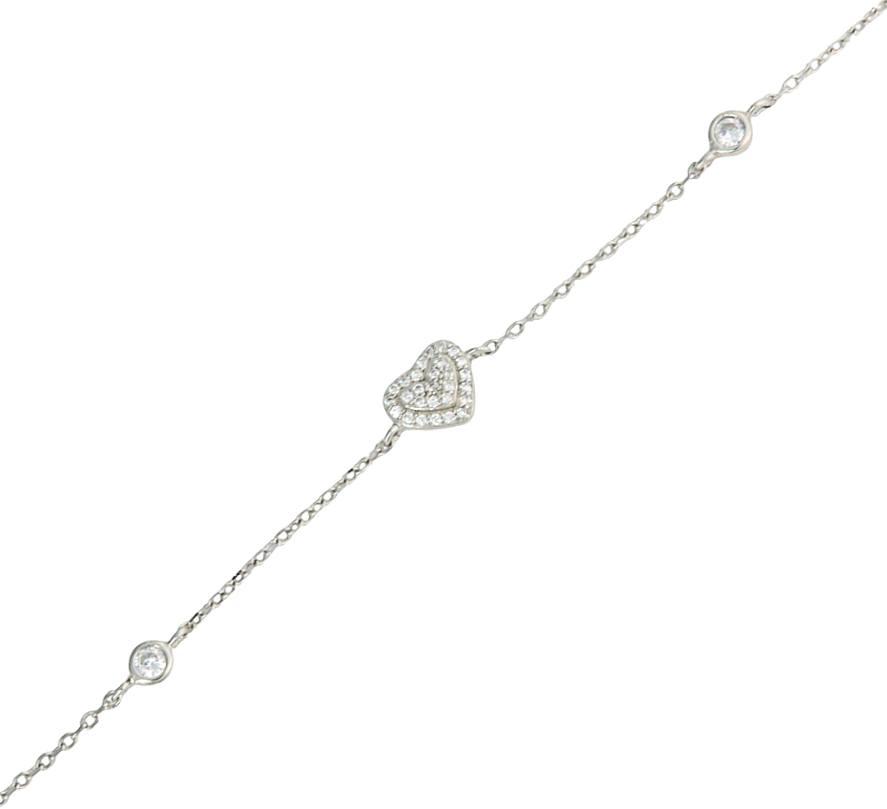 Γυναικείο Βραχιόλι ασημένιο 925 με Καρδιά και Ζιργκόν Πέτρες