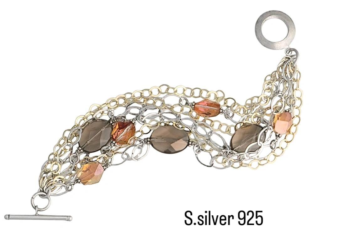 •  Εντυπωσιακό γυναικείο Βραχιόλι , απο ασήμι 925 , πλούσιο με αλυσίδες επιπλατινωμένες και ειχρυσωμένες κίτρινο χρυσό 14 Κ . ΜΕ Κούμπωμα Τ , κρύταλλα κοπής ταγιέ ένα βραχιόλι που δε περνάει απαρατήρητο ...!
