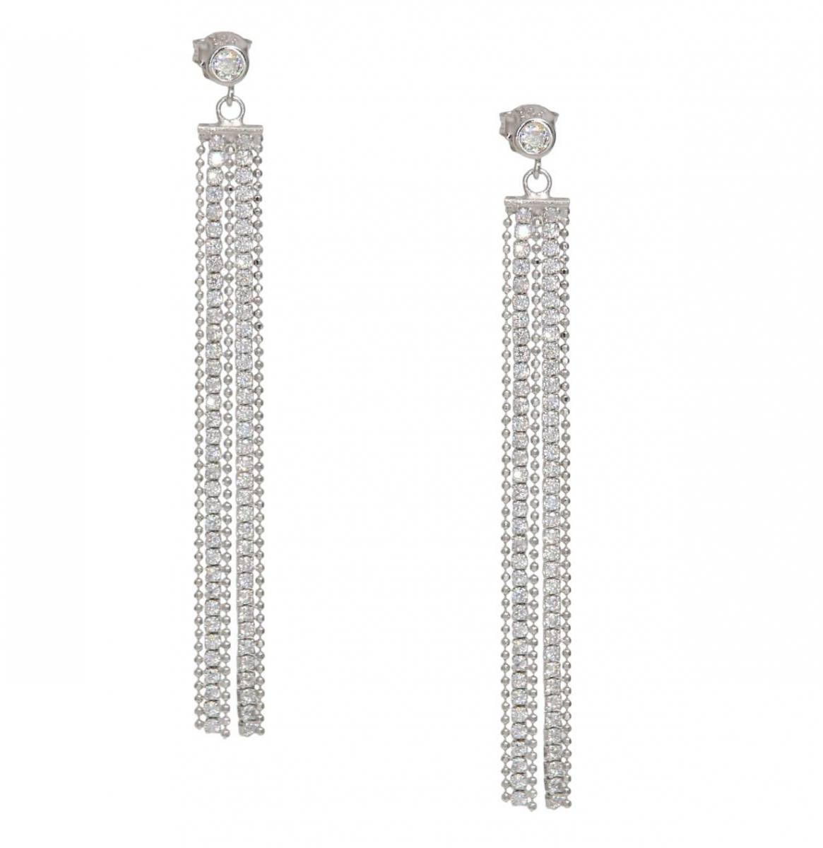 Εντυπωσιακά Κρεμαστά ασημένια σκουλαρίκια με ριβιέρες και κρεμαστές αλυσίδες
