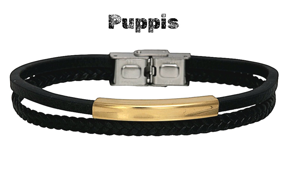 βραχιόλι με δε΄ρμα διπλό , πλεξούδα , πλακέ , και στοιχεία ανοξείδωτο ατσάλι , απο τη συλλογή puppis .