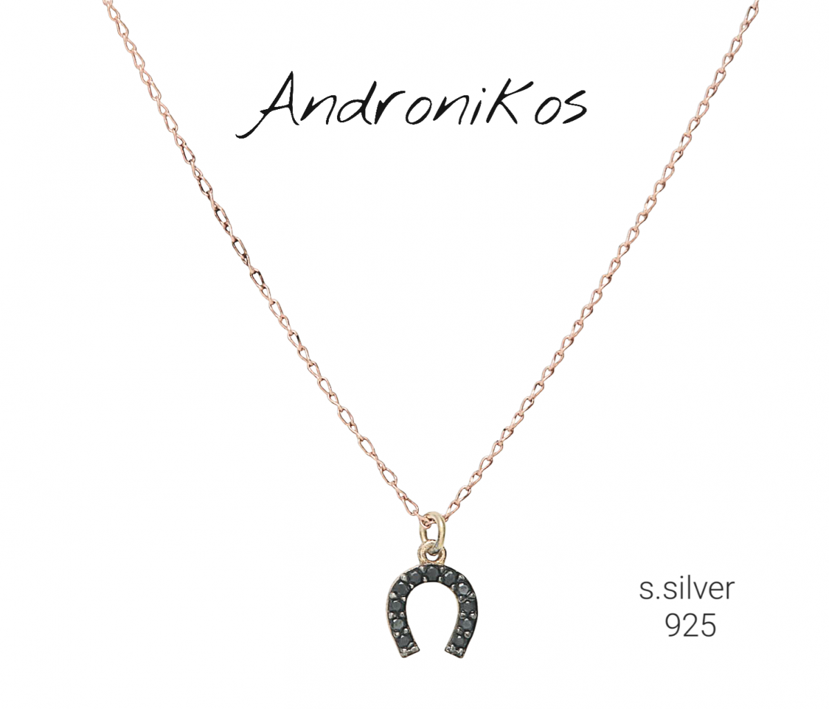 Eνα μικρό πεταλάκι με μαύρα καρφωτά ζιργκόν απο ασήμι 925 , επιχρυσωμένο ροζ χρυσό 14 Κ ,. Η αλυσίδα έχει 40 εκατοατά μήκος .