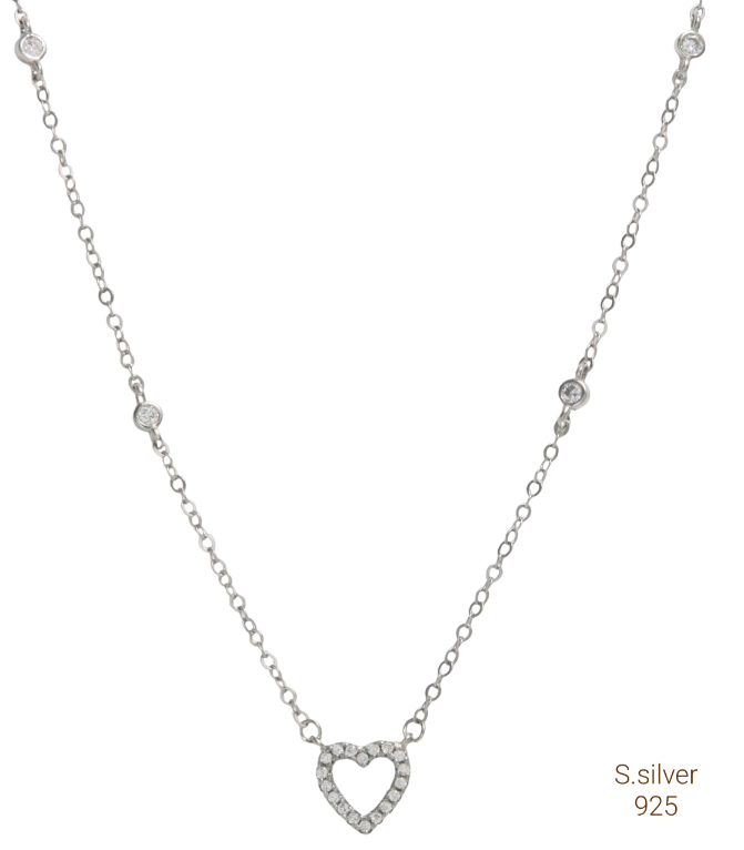 Ομορφα φινιρισμένο γυναικείο κολιέ με καρδιά απο ασήμι 925 επιπλατινωμένο . Μίνιμαλ γραμμη στολισμένο στην αλυσίδα με καστόνια ζιργκόν .ενα κολιέ για ολες τις ωρες η για ενα όμοεφο δώρο στο αγαπημένο σας πρόσωπο .