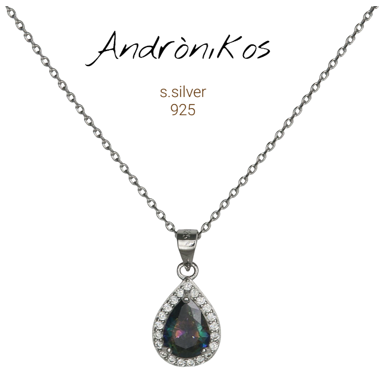 •  Κολιέ από ασήμι 925 επιπλατινωμένο με αριστο φινίρισμα και εξαιρετικό ζιργκόν διαθλαστικό ιριδίζον ! . Αδιαμφησβήτιτα θα κλέψει με διακριτικότητα ματιές σε κάθε σας κίνηση !