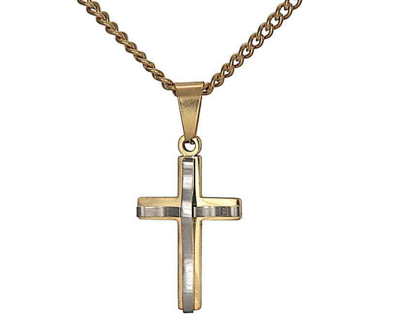 Μινιμαλ ανδρικός Σταυρός απο τη συλλογή PUPPIS * Από ανοξείδωτο ατσάλι , επιχρυσωμένη αλυσίδα γκουρμέτ με ασημί κ επίχρυσες λεπτομέρειες .
