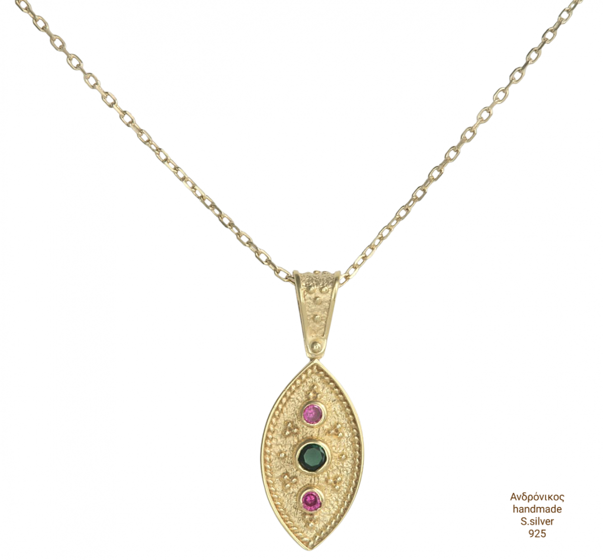 Μέ άριστο φινίρισμα λοιπόν , Βυζαντινό απο ασήμι 925 . με ντουμπλέ επιχρύσωση στα 18 κ κίτρινο χρυσό και ζιργκόν πέτρες καρφωτές , ζιργκόν .