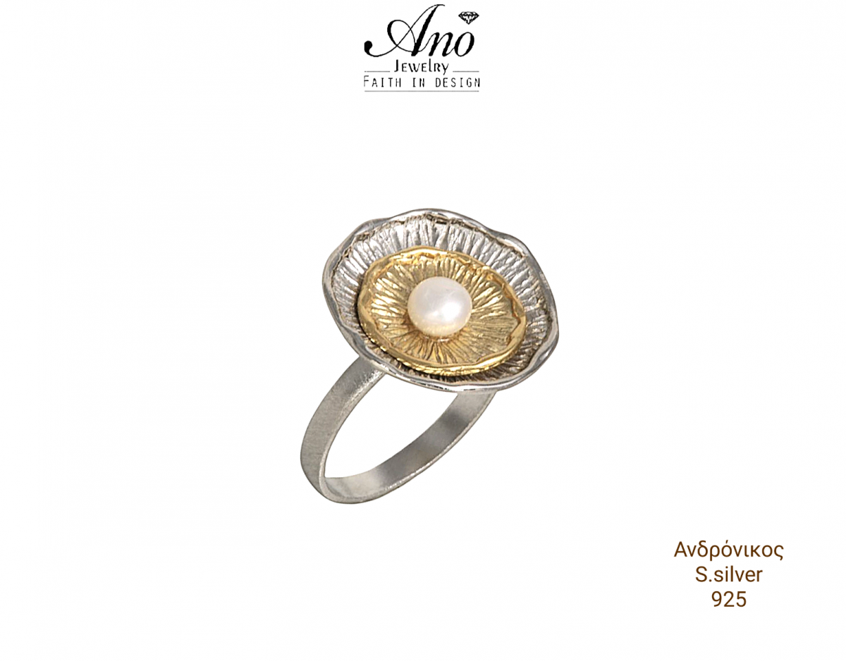 Χειροποίητο δαχτυλίδι απο τη συλλογή Αno * Σε τέλεια αρμονία οι αποχρώσει χρυσό ασημί , με ανάγλυφες επιφάνειες και μααργαριτάρι κέντρο . Εντυπωσιακό με άριστο φινίρισμα απο ασήμι 925 επιπλατινωμένο , ενώ το χ΄ρυσωμα ειναι ντουμπλέ στα 18 καράτια κίτρινο χρυσό .μια υπέροχη πρόταση για το ΄τελειο  δώρο ..... σε όσους πραγματικά ξεχωρίζουν .!