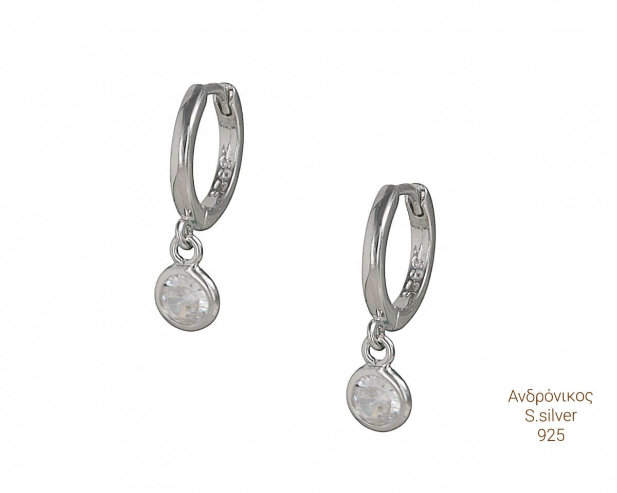 • Ασημένια 925 και επιπλατινωμένα σκουλαρίκια κρικάκια μικρά με κρεμαστό ζιργκόν σε καστόνι .
