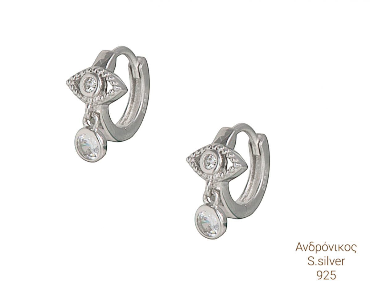 •  Κρικάκια ασημένια απο ασήμι 925 επιπλατινωμένα , με ματάκι , και κρεμαστό ζιργκόν σε καστόνι .