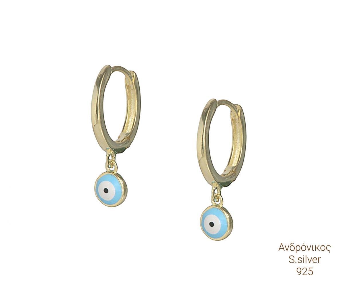 Ασημένια σκουλαρίκια απο ασήμι 925 , κρίκοι επιχρυσοι κίτρινο χρυσό 14 κ μικροί , με κρεμαστό μα΄τακι σμάλτο .