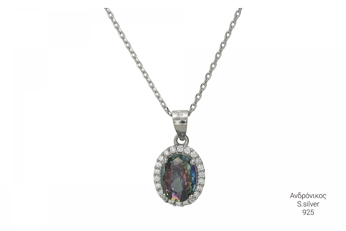 Kολιέ γυναικείο από ασήμι 925 , επιπλατινωμένο με ζιργκόν πέτρες , ροζέτα .! ιριδίζον ζιργκόν , νέος χρωματισμός .!