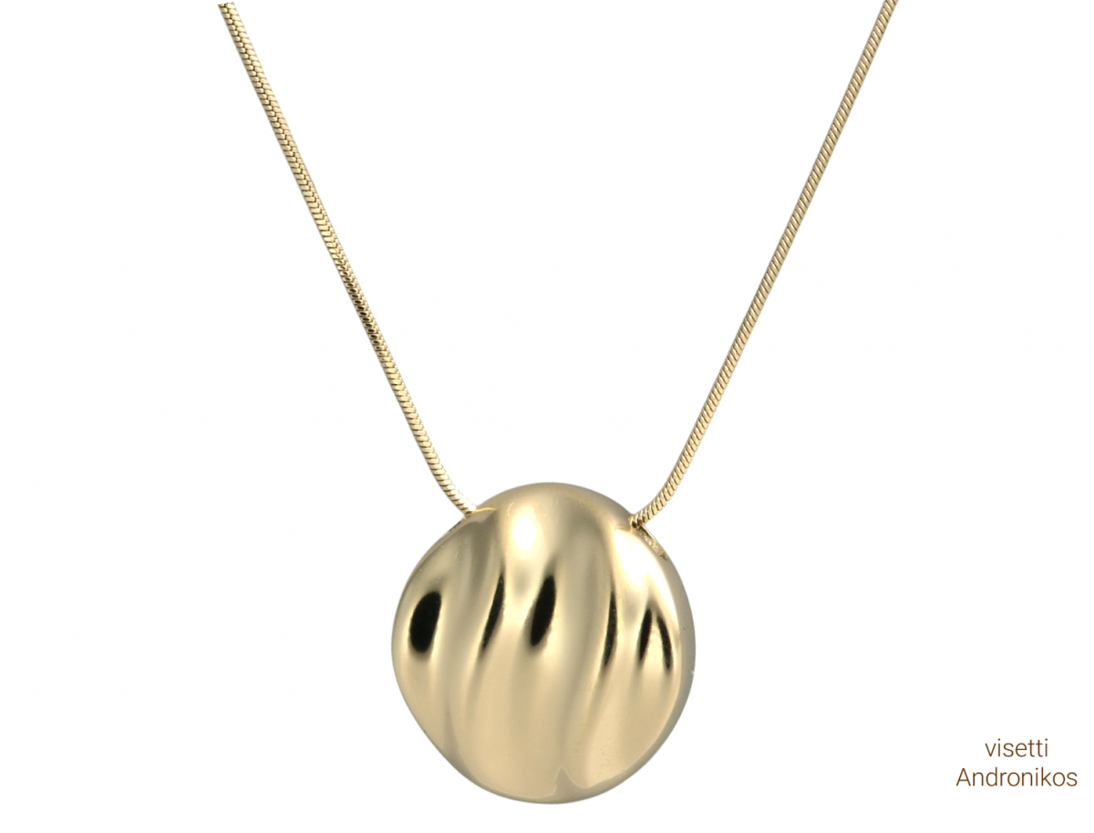 Γυναικείο κολιέ από τη συλλογή VISETTI * Από ανοξείδωτο ατσάλι , επιχρυσωμένο κίτρινο χρυσό , ανάγλυφο πένταντ κέντρο , και αλυσίδα snake .