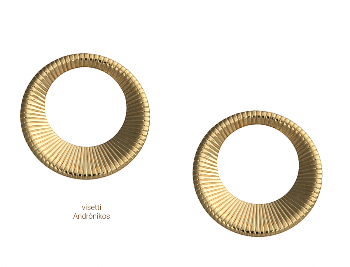 ιδιαίτερα σκουλαρίκια απο τη συλλογή visetti * κρικοι ανάγλυφοι με ραβδώσεις , επιχρυσωμένοι κίτρινο χρυσό , ανοξείδωτο ατσάλι .
