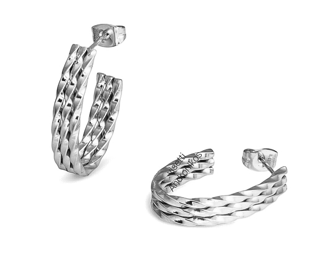 Πολύ όμορφο σκουλαρίκι απο τη συλλογή visetti , καρφωτός οβάλ κρίκος με μπαρες ανάγλυφες , .ανοξείδωτο ατσάλι.