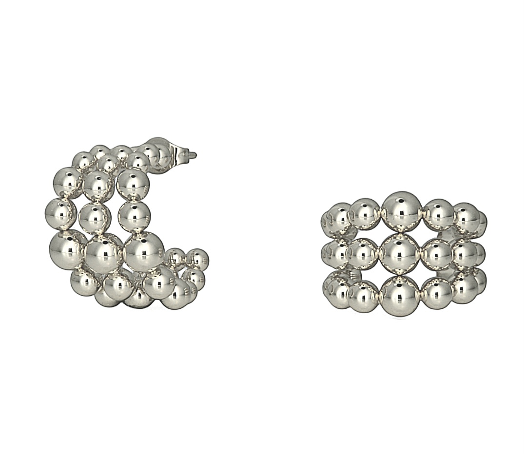 Ιδιαιτερο καρφωτό σκουλαρίκι ανοξειδωτο ατσάλι . Σχέδιο κρίκος με μπίλιες , γυαλιστερές επιφάνειες λουστράτες , πραγματι πολυ ομορφο για ... το τελειο δωρο !