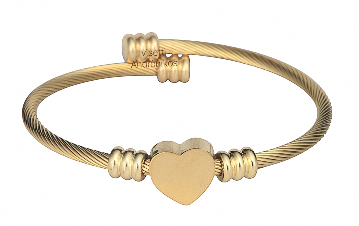 Γυναικείο ατσάλινο βραχιόλι , απο τη συλλογή VISETTI . ελαστικό ντίζα και κέντρο καρδιά , επιχρυσωμένο σε κίτρινο χρυσό .