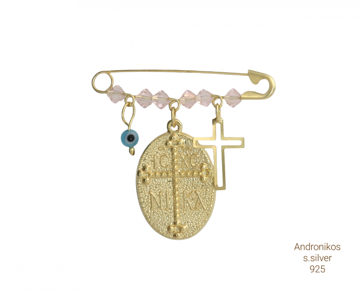 Από ασήμι 925 , επιχρυσωμένη 14 κ κίτρινο χρυσό παραμάνα για νεογέννητο με ματάκι κ Κωσταντινάτο