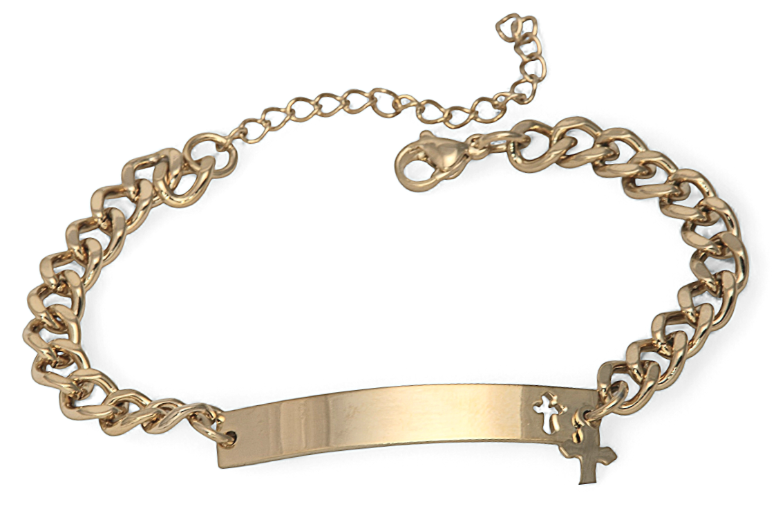 Γυναικεία ταυτότητα ανοξείδωτο ατσάλι 316L με λουστράτες γυαλιστερές επιφάνειες , κ εξτέ προέκταση στην αλυσιδα διαχρονικό κ πάντα επίκαιρο βραχιόλι επιχρυσωμένο κίτρινο χρυσό.