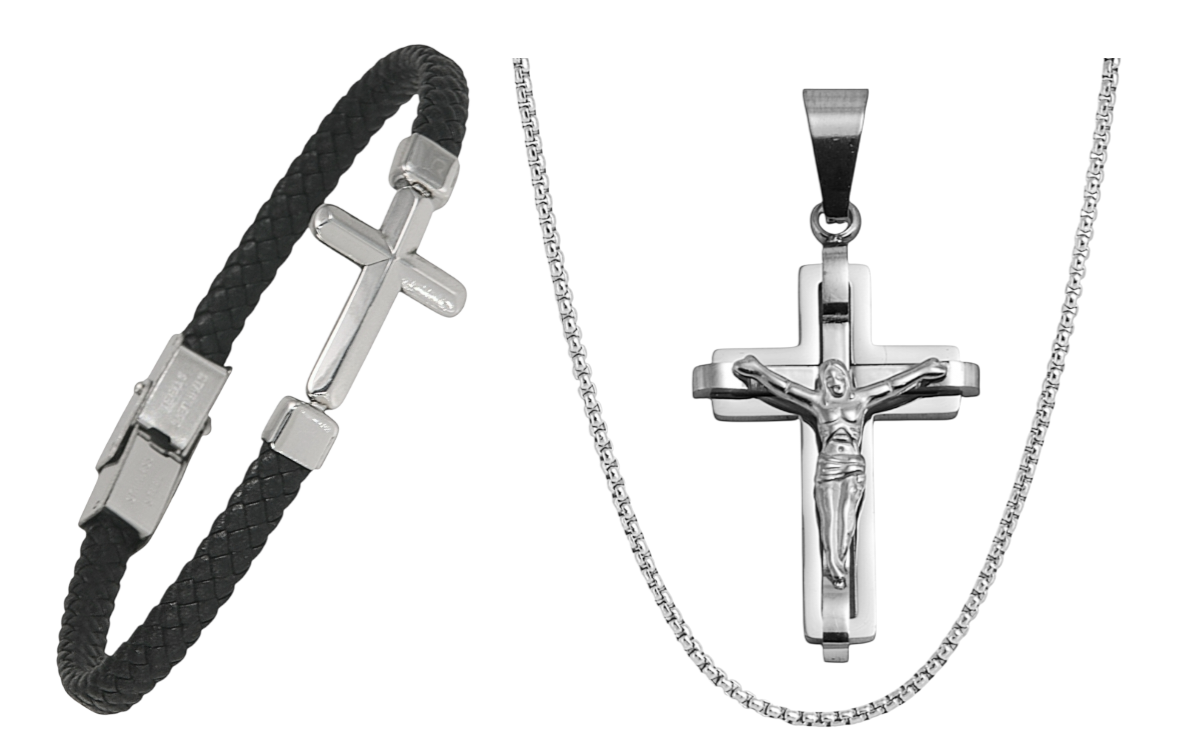 •  Aνδρικό βραχιόλι με δέρμα και Σταυρό λουστράτο