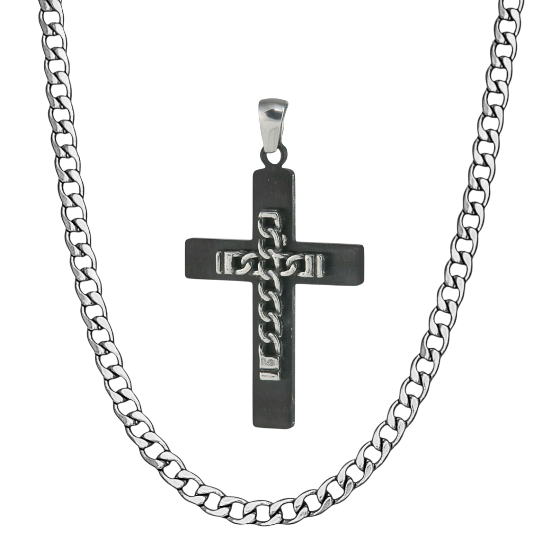 Eντυπωσιακός ανδρικός Σταυρός ανοξείδωτο ατσάλι 316 L . επιβλητικός , μαυρος με σατινέ επιφάνεια  και ασημί λεπτομέρεια . ιδανικός για καθημερινή χρήση η δώρο  ,δε προκαλεί αλεργίες , δε χάνει τη λάμψη του  , έχει διαστάσεις 3.5 χ 2.5 εκατοστά χωρίς το κρίκο .