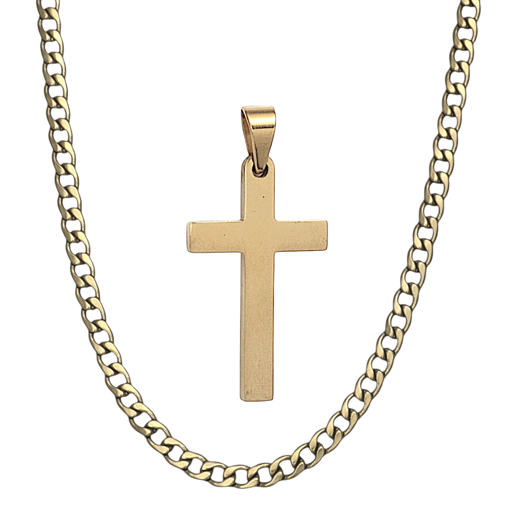 • ενα εκλπηκτικό σέτ Σταυρός - αλυσίδα επιχρυσωμένα κίτρινο χρυσό από ανοξείδωτο ατσάλι 316 L . ιδανικό για καθημερινή χρήση , για ιδιαίτερες περιστάσεις η δώρο .! με αίσθηση πολυτέλειας , O Σταυρός με επιφάνεια λουστράτη γυαλιστερή γεωμετρικός και διαστάσεις 3.4 χ2.2 εκατοστά και μέτρηση χωρίς τον κρίκο .! οι δοκοί με πάχος 3 mm .