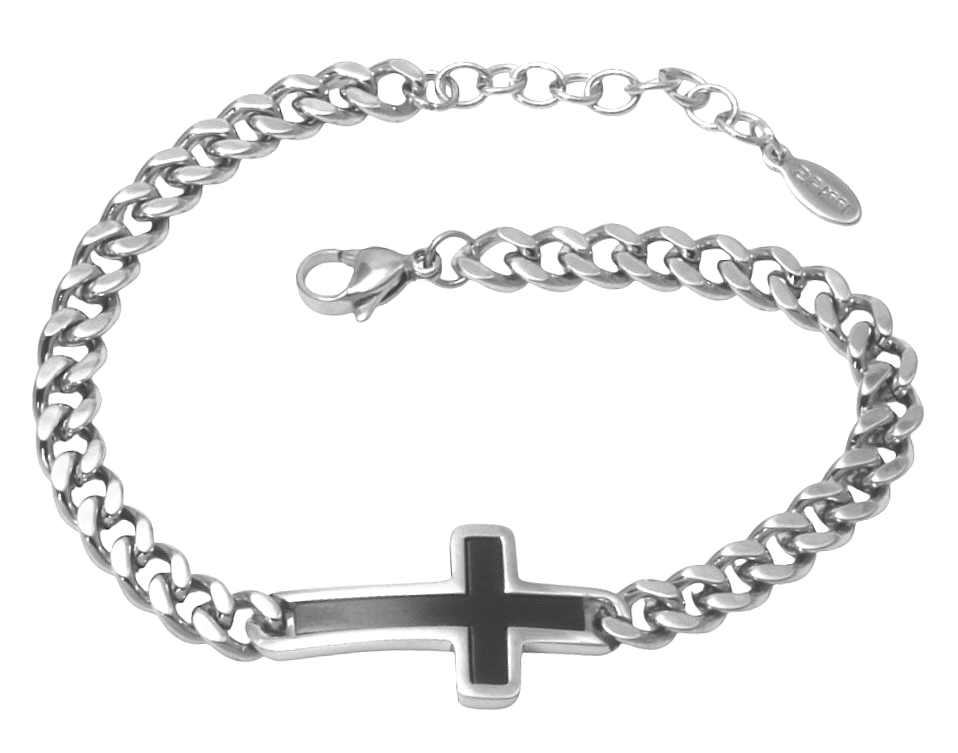 Ανδρικό βραχιόλι ανοξείδωτο ατσάλι με γκουρμέτ αλυσίδα και ένθετο Σταυρό .Ιδανικό για δώρο , καθημερινή χρήση δε προκαλεί αλεργίες , διατηρεί τη λάμψη του ακόμη και στις ποιο αντίξοες συνθήκες .! Σε διχρωμία ασημί με λεπτομέρεια μαυρη αδιαμφισβήτιτα κλέβει ματιές σε κάθε σας κινηση