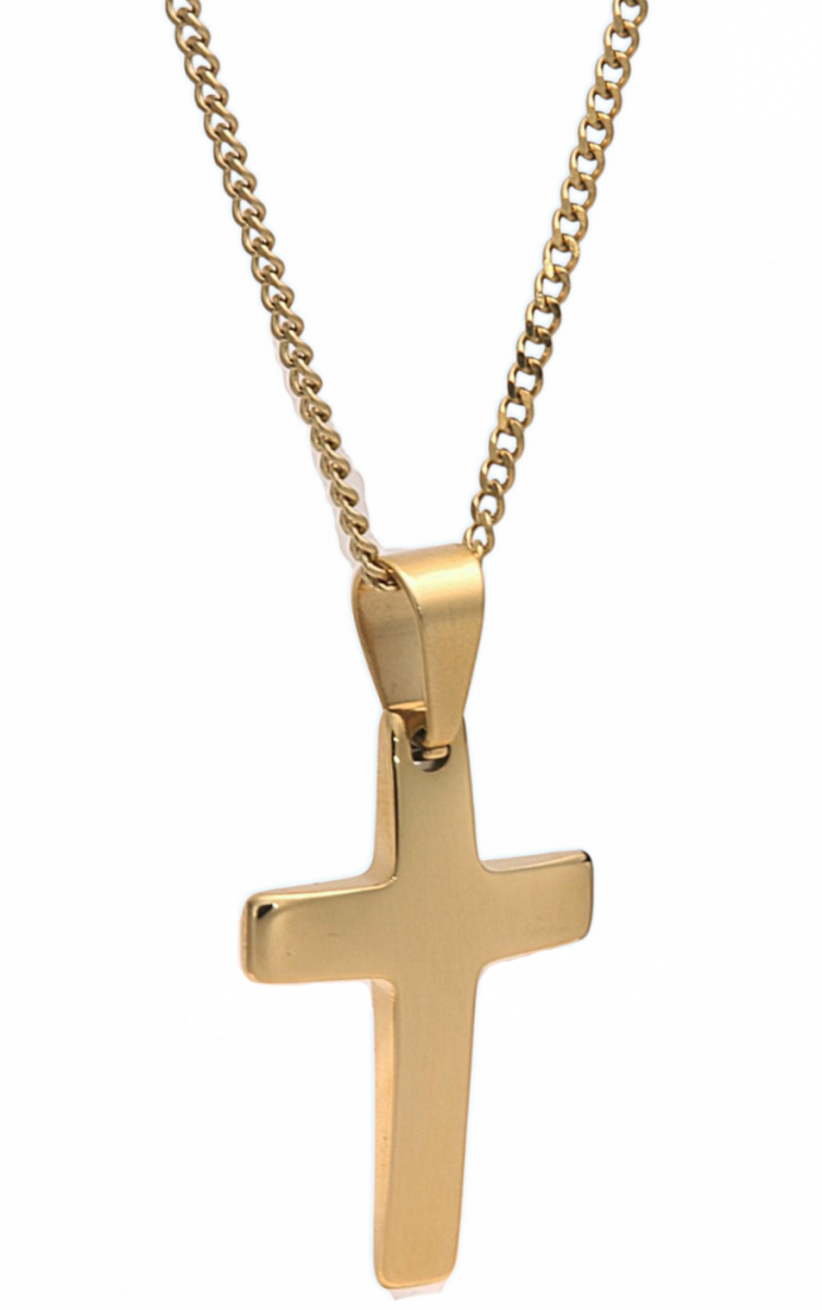 • Aνδρικός Σταυρός ανοξείδωτο ατσάλι . με γυαλιστερες κυρτές επιφάνειες επιχρυσωμένος .Αριστο φινίρισμα ιδανικός για καθημερινή χρήση η δώρο .!  με ύψος 3 εκατοστα , πλάτος 1.9 εκ . συνοδευεται με αλυσίδα 55 εκατοστά γκουρμέτ 1,9 mm πλάτος .