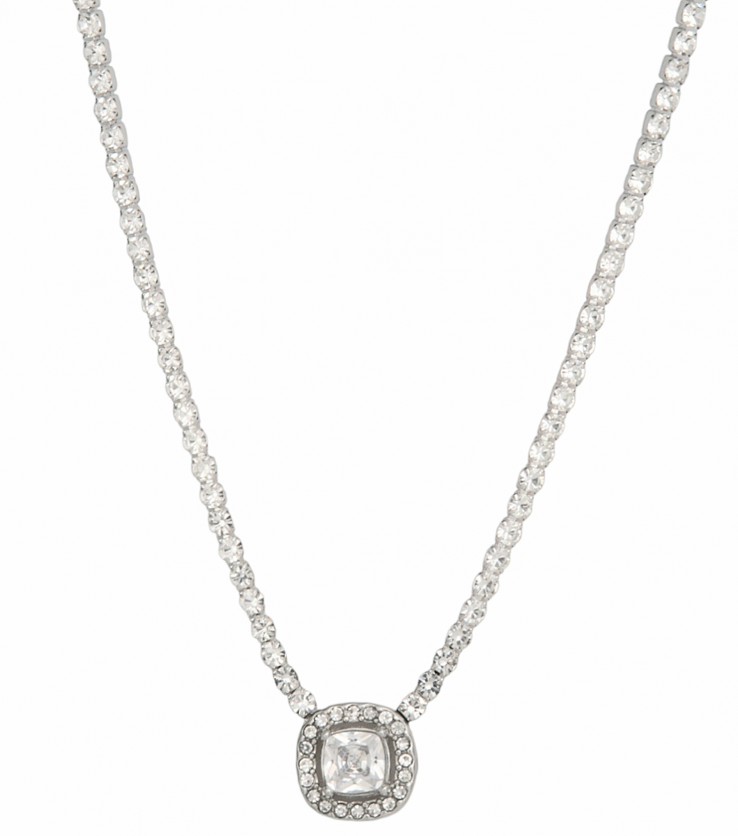 Ενα πανέμορφο διαχρονικό κολιέ , λαμπερό με στράς , ανοξείδωτο ατσάλι και ροζέτα στο κέντρο .! 40 εκατοστά μήκος και 5 εκατοστά προέκταση .