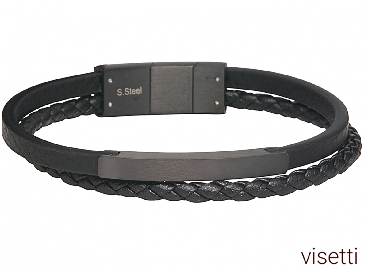 • M-ε υπογραφή της visetti , βραχιόλι με πλακε και κοτσίδα δερμάτινο , εγκράφα με σατινέ ματ επιφάνεια μαυρη , και κούμπωμα ασφαλείας . με διακριτική γοητεία σε κάθε σας κίνηση , ιδανικό για δώρο που θα ...εκπλήξει ευχάριστα , για casual καθημερινές εμφανίσεις με χαραχτήρα , και όχι μόνο , μια και ειναι ικανό να πλαισιώσει το στύλ σας και σε ιδιαίτερες μοναδικές εμφανίσεις σας . ! προσφέρεται σε συσκευασία δωρου visetti , ενώ διαθέτει και αποσπωμενο κούμπωμα , για τέλεια εφαρμογή στο καρπό .! με μηκος 21 - 22 εκατοστα .